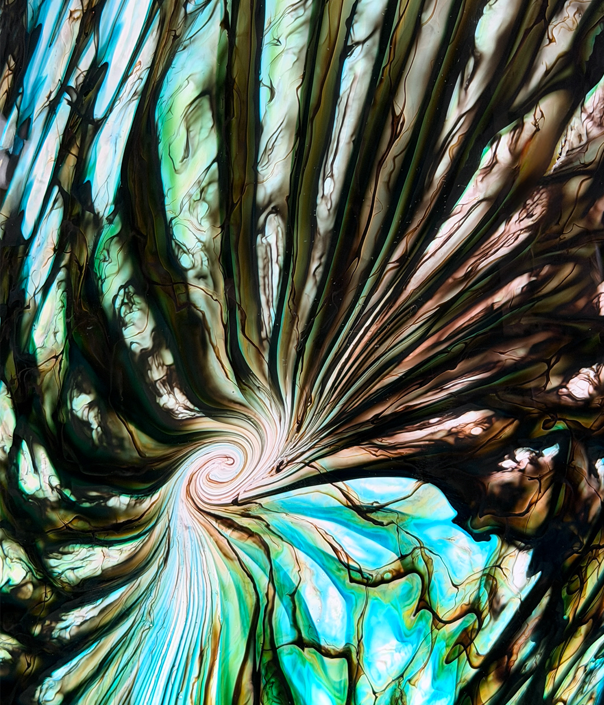 Aufwändige Technik: das Muster wird in einer langwierigen Technik umgeheftet und neu positioniert um das Zentrum in der Mitte zu platzieren. Diese Skulpturen wirken optisch wie Meisterwerke, nur in einem kleineren und preisgünstigerem Format.